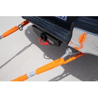 The Volkswagen Amarok (2/2011 on) X-Bar has a towing capacity of 3500kg with a ball weight of 300kg. The X-Bar comes with a rated 8 tonne centre recovery point and two rated 4 tonne side recovery points. Whenever you are recovering a vehicle that's stuck always make sure you use a rated recovery point as using other methods may cause damage or injury. The X-Bar also has a number of features benefitial to offroad travelling including quick release cover protecting plug points, designed to suit your vehicle, Twin protected trailer socket mount points, SmartPin™ hitch pin, premium eCoat & powder-coat finish and rated D-shackles.