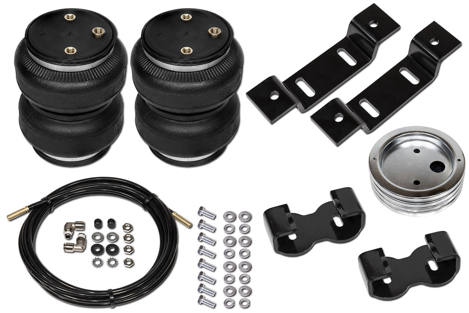 All this can be mitigated by installing a set of Polyair Bellows. The bellows kit is air adjustable, giving you the flexibility to tailor the level of support for your individual load types and weights. Having a correctly sprung vehicle for constant loads is always recommended as the first step, but in most cases the leaf springs are rated well past what you will carry daily, giving you a rough, uncomfortable ride when not loaded up. Having the flexibility of the adjustable Polyair Bellows means you can have a smooth stock ride comfort when unloaded and simply adjust the pressure when towing or hauling. Simple.