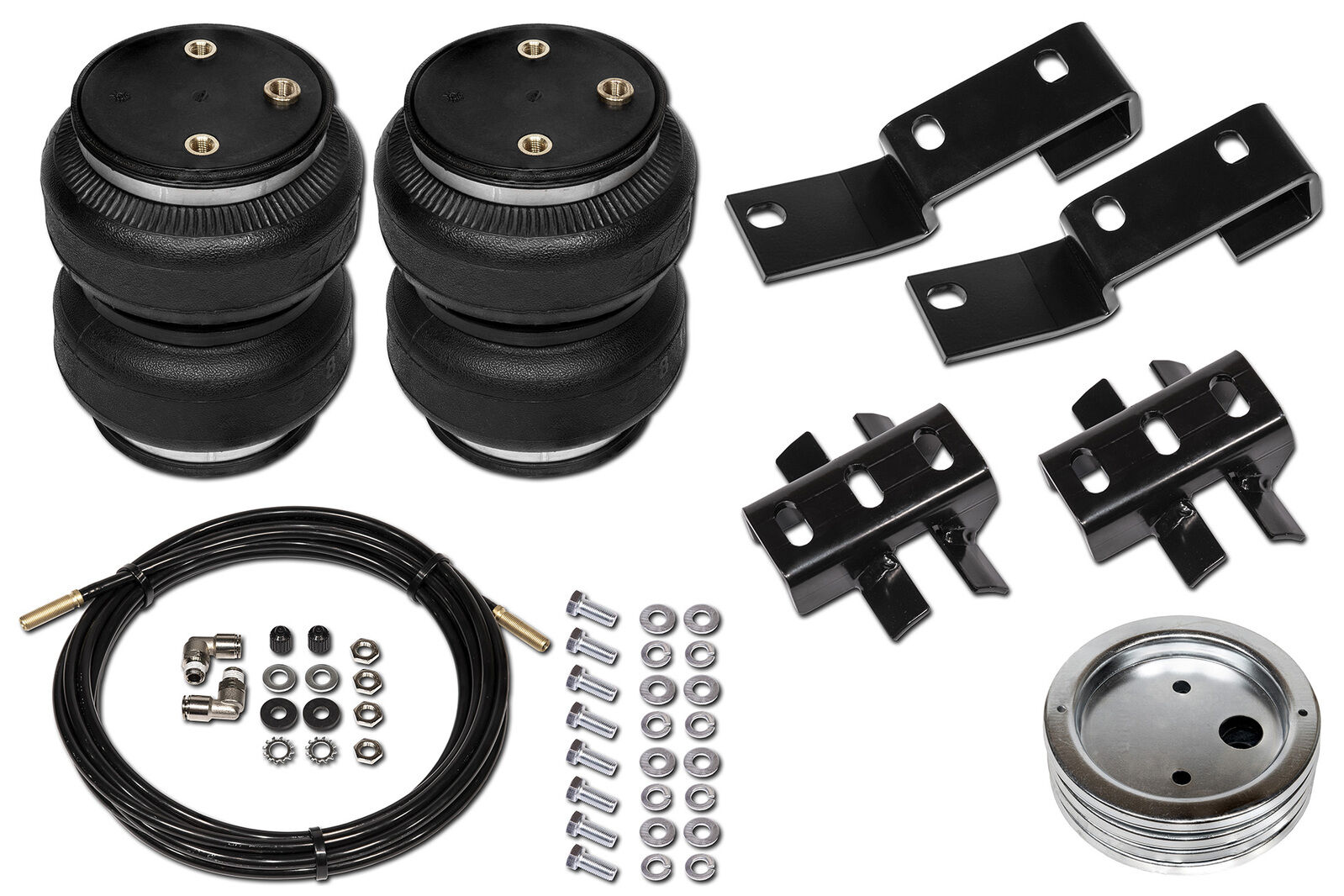 All this can be mitigated by installing a set of Polyair Bellows. The bellows kit is air adjustable, giving you the flexibility to tailor the level of support for your individual load types and weights. Having a correctly sprung vehicle for constant loads is always recommended as the first step, but in most cases the leaf springs are rated well past what you will carry daily, giving you a rough, uncomfortable ride when not loaded up. Having the flexibility of the adjustable Polyair Bellows means you can have a smooth stock ride comfort when unloaded and simply adjust the pressure when towing or hauling. Simple.