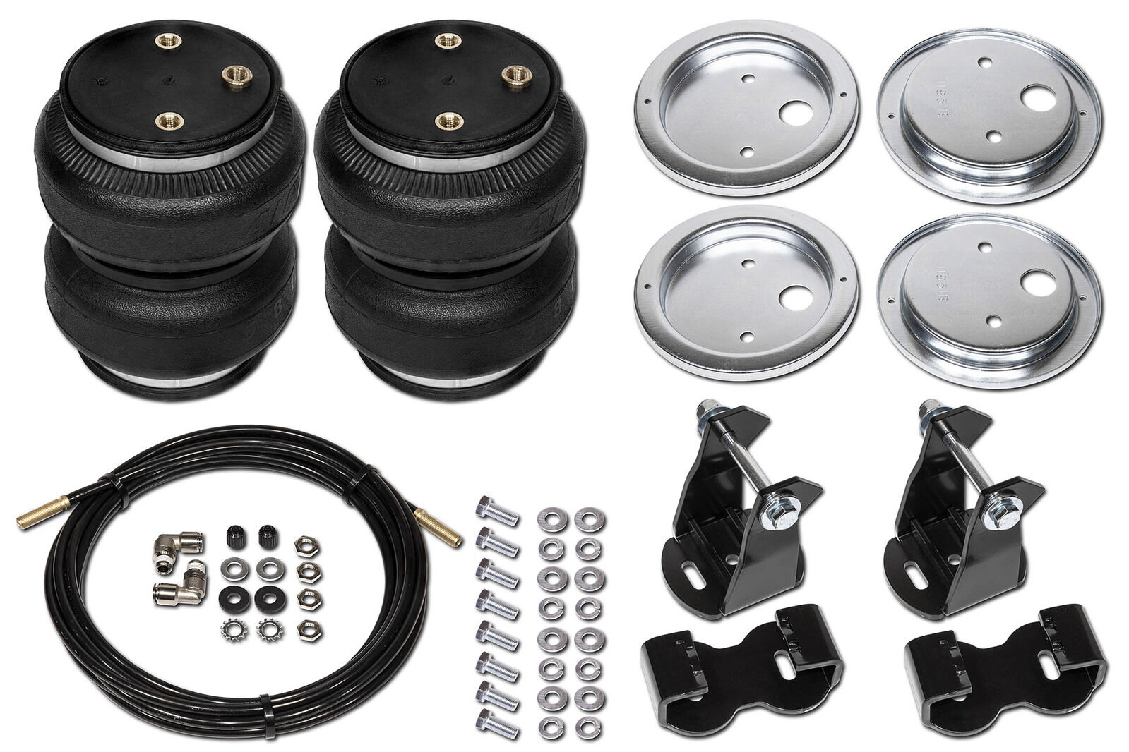 All this can be mitigated by installing a set of Polyair Bellows. The bellows kit is air adjustable, giving you the flexibility to tailor the level of support for your individual load types and weights. Having a correctly sprung vehicle for constant loads is always recommended as the first step, but in most cases the leaf springs are rated well past what you will carry daily, giving you a rough, uncomfortable ride when not loaded up. Having the flexibility of the adjustable Polyair Bellows means you can have a smooth stock ride comfort when unloaded and simply adjust the pressure when towing or hauling. Simple.