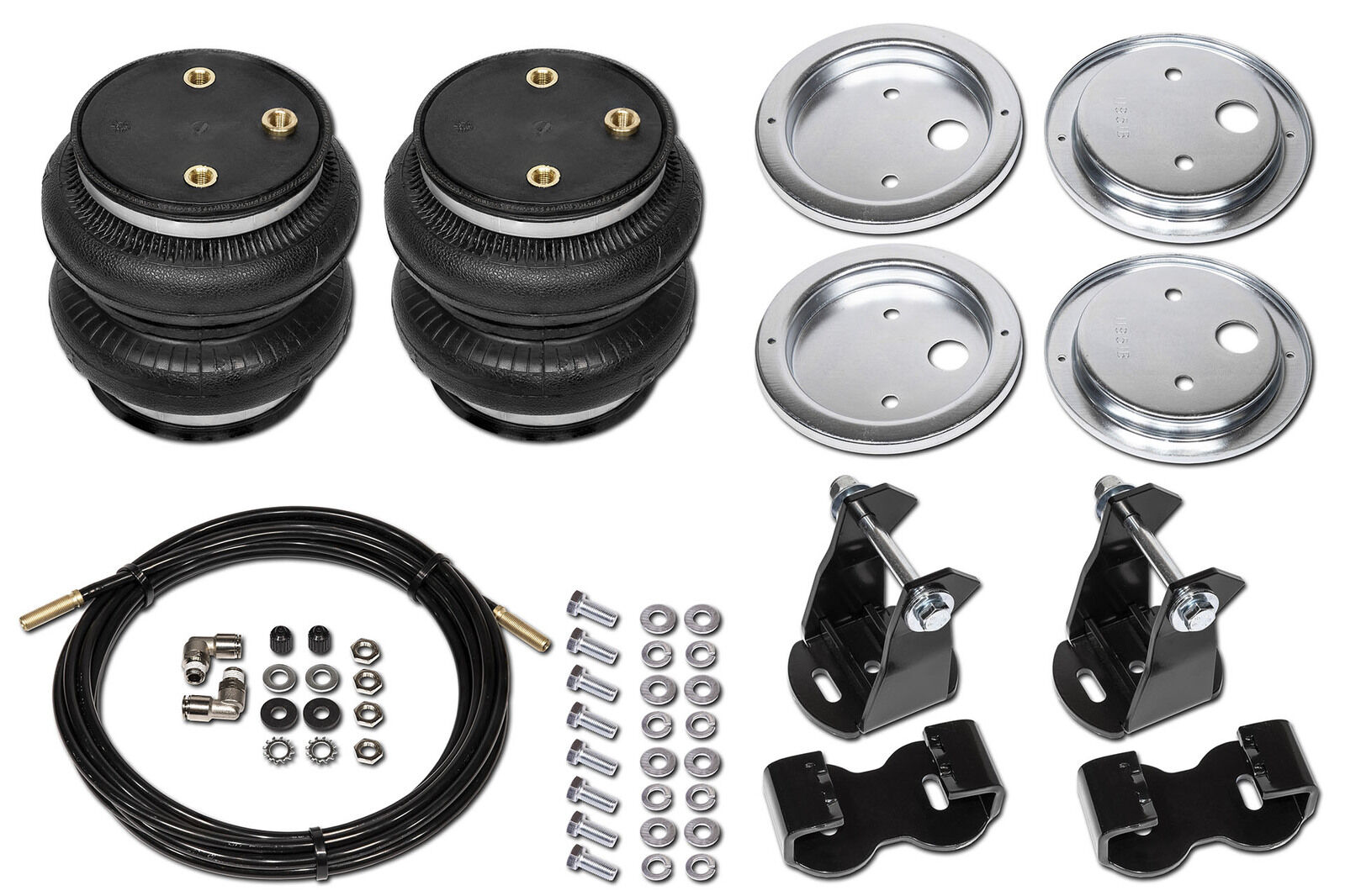 All this can be mitigated by installing a set of Polyair Bellows. The bellows kit is air adjustable, giving you the flexibility to tailor the level of support for your individual load types and weights. Having a correctly sprung vehicle for constant loads is always recommended as the first step, but in most cases the leaf springs are rated well past what you will carry daily, giving you a rough, uncomfortable ride when not loaded up. Having the flexibility of the adjustable Polyair Bellows means you can have a smooth stock ride comfort when unloaded and simply adjust the pressure when towing or hauling. Simple.