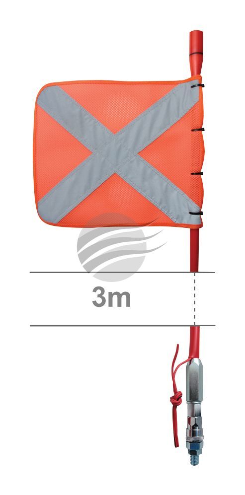 Jaylec Buggy Whip 3.0M M/V LED, Refl Cross Flag W/- Q/Rel Mnt Base